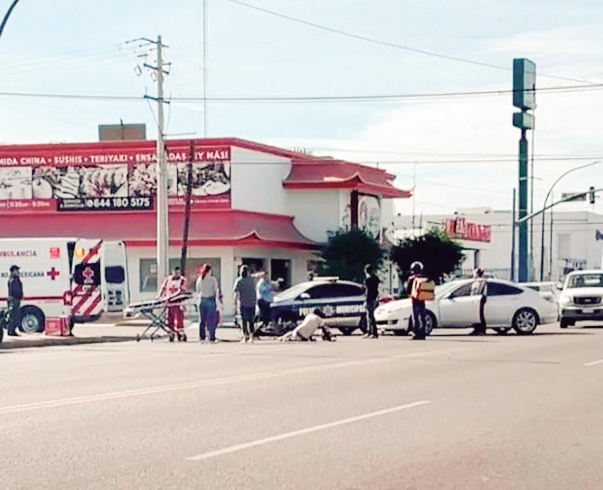 La tarde de ayer se registró un accidente de tránsito en el primer cuadro de Ciudad Obregón, donde un repartidor de plataforma resultó lesionado luego de ser embestido por la conductora de un automóvil Mazda blanco, modelo reciente. El percance movilizó a elementos de Tránsito Municipal y a personal de emergencias.