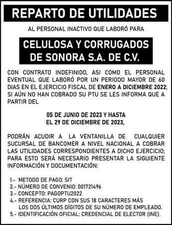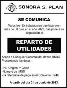 renovarán: Gubernaturas Senadores 00 Diputados Federales 30 Congresos Locales V VIERNES 2.6.2023 SUR DE SONORA AÑO LV. ED 21807 12 páginas 2 cuerpos $12.00 facebook.com/tribunasonora twitter.com@tribunasonora Libre expresión al servicio