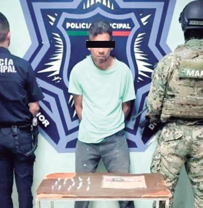 Elementos de la Policía Municipal y Marina lograron capturar a un hombre en posesión de droga y un arma blanca, durante un recorrido de vigilancia en las calles Pensionados y Sor Juana Inés de la Cruz, en la colonia Tepeyac del municipio de Cajeme. El ahora detenido fue identificado como Christian Rolando ‘N’, de 39 años de edad, a quien se le aseguraron 15 envoltorios de plástico transparente, confeccionados de manera individual, que contenían una sustancia granulada con características similares a crystal. Además, elementos de seguridad le encontraron un cuchillo, por lo que tanto el sujeto como los objetos