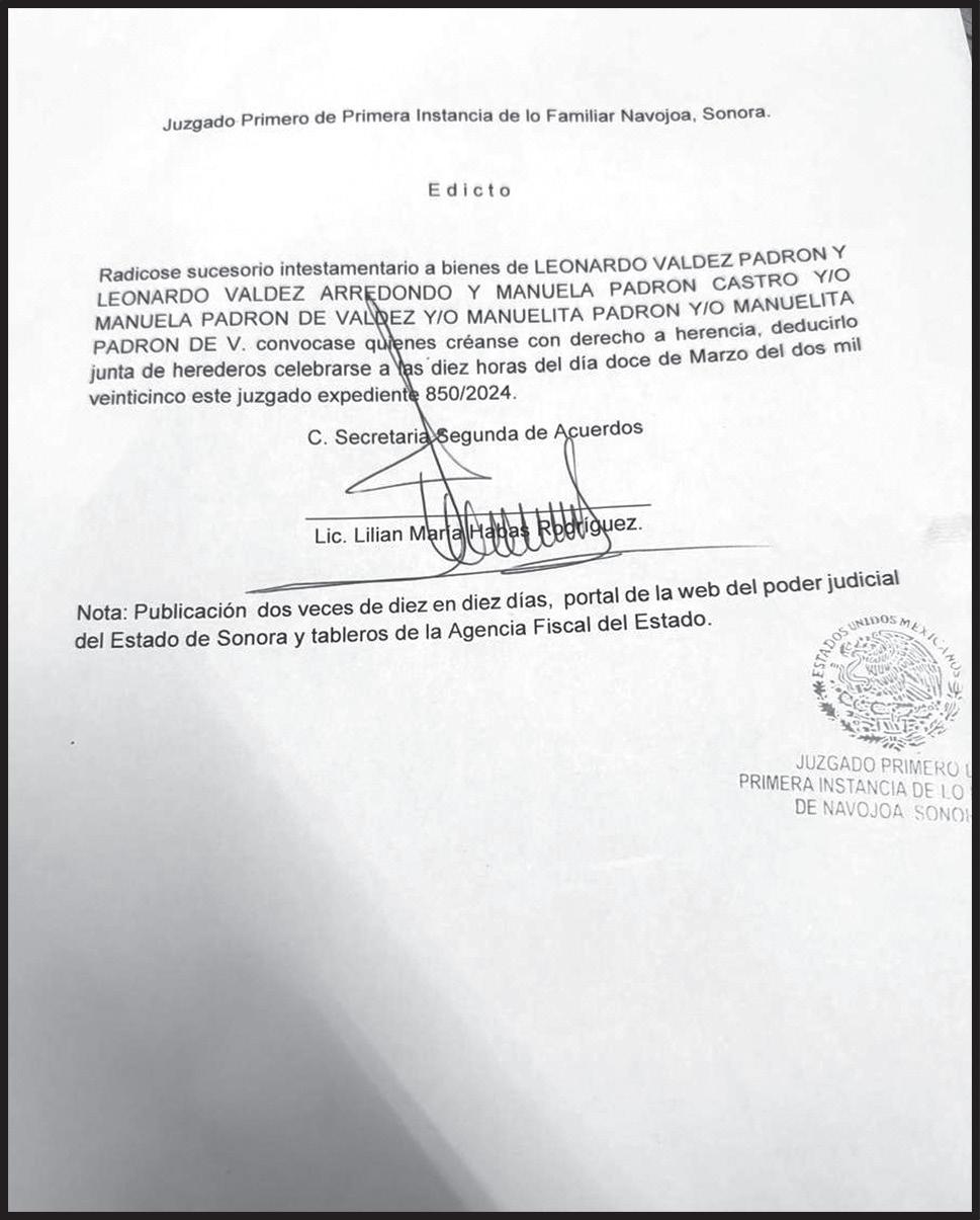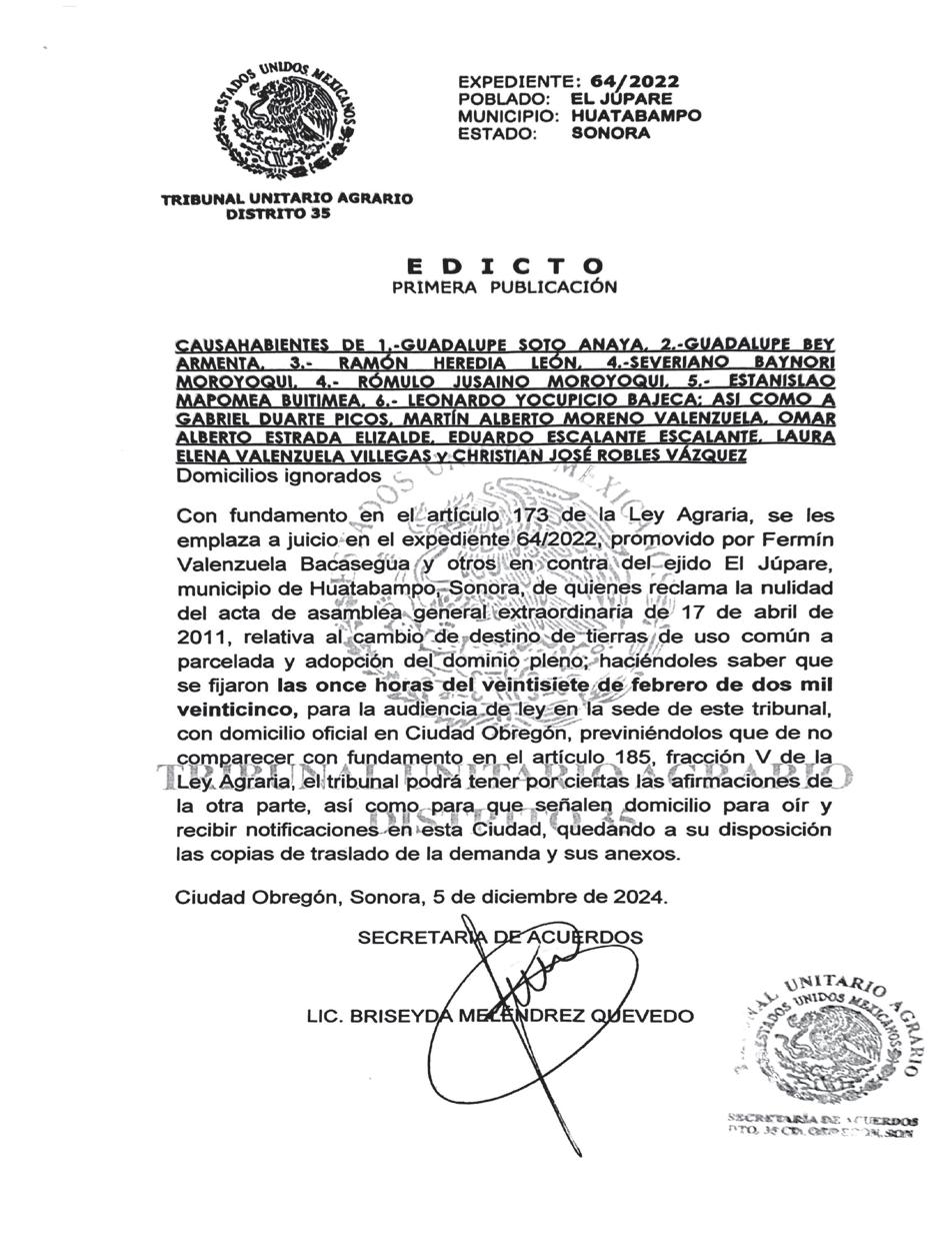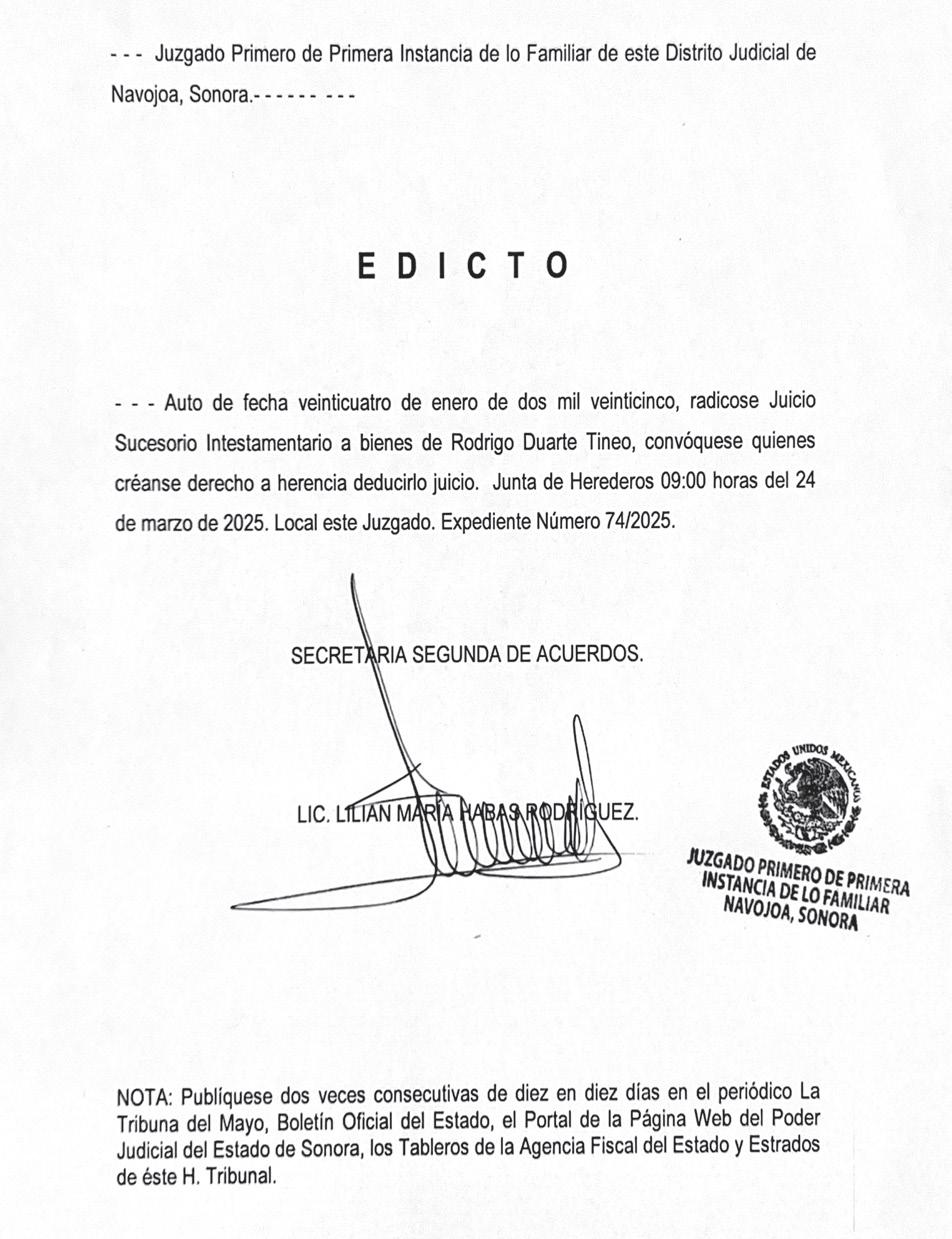 TRIBUNA DEL YAQUI, publicación de circulación diaria. Año LI. Certificado de Licitud de Título y Contenido: 16469. Reserva de Derechos al Uso Exclusivo: 04-2016-041313515500-101, otorgado por el Instituto Nacional del Derecho del Autor. Publicado y distribuído por TRIBUNA DEL YAQUI S.A. DE C.V., Domicilio de la impresión en Guadalupe Victoria No.115 C.P. 85160 Col. Campestre, Ciudad Obregón, Sonora, Tel. 410 30 30.