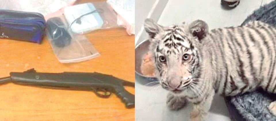 Aseguran a un tigre de bengala, droga, arma y dinero en Nogales