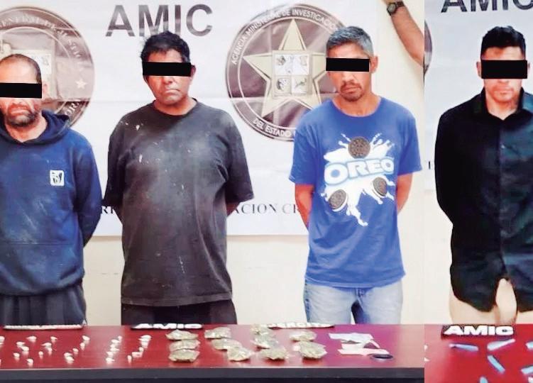 Sorprenden a los sujetos un inmueble ubicado en la calle Jalapa, de la colonia Mezquite. Tras estos hechos, tanto los detenidos como los indicios recuperados fueron puestos a disposición de la Agencia del Ministerio Público correspondiente a fin de que se procedan las diligencias que la ley demanda e inicien las audiencias contra los cuatro señalados.