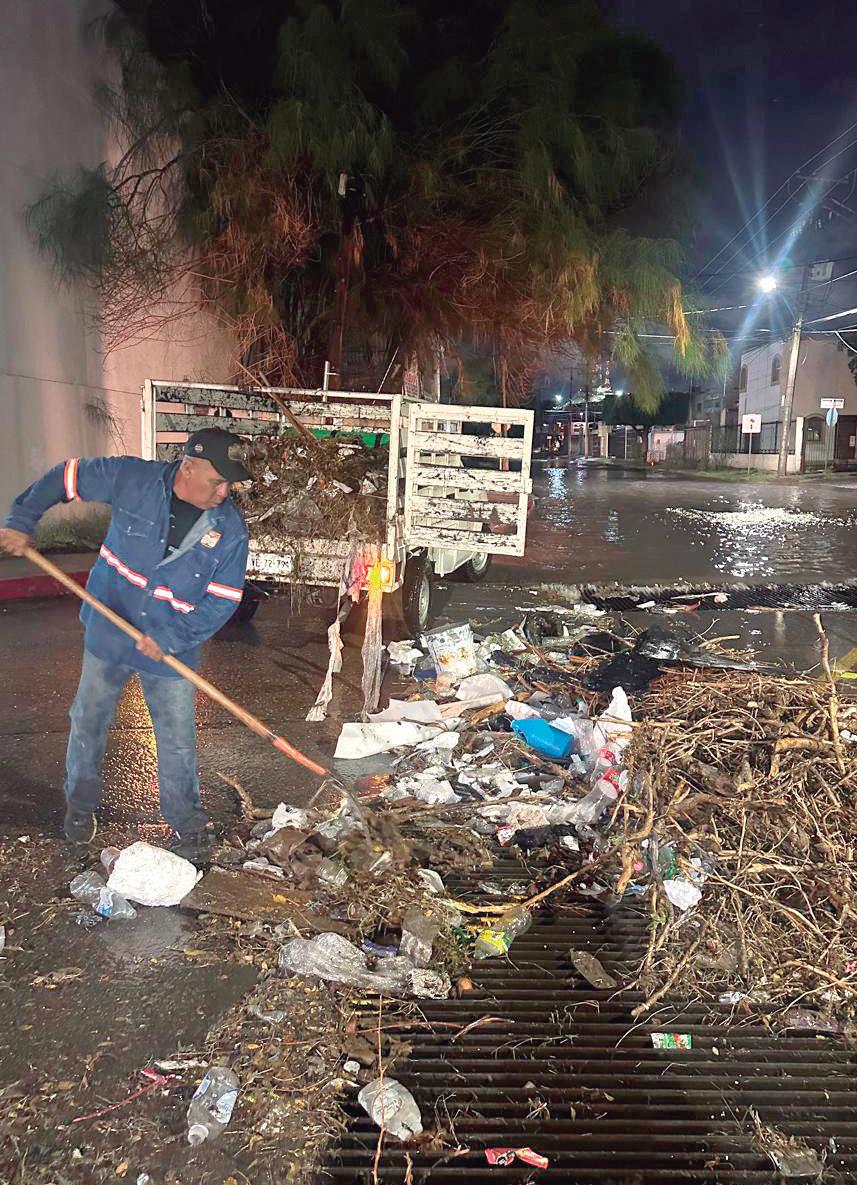 14 trabajadores de Servicios Públicos laboraron en la noche del sábado, retirando alrededor de ocho toneladas de basura de parrillas pluviales, para evitar problemas de inundaciones.