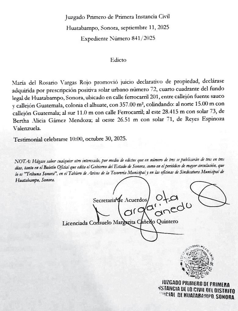 namiento La Cholla. El martes 14, en la primaria Lázaro Mercado, en calle Nueva Circunvalación, colonia Coloso Alto. Ese mismo día también se tendrá registro en la escuela primaria Ramón López Velarde, ubicada en calle Maltés, sin número, en la colonia Naranjos. El miércoles 15 de octubre se llevará a cabo en el plantel Aida Yanes Navarro, en bulevar Santa Clara final, sin número, en Villas del Sur. Otra jornada, el 15 de octubre, será en la escuela primaria Guadalupe Victoria, localizada en Jorge Gaxiola, sin número, en la colonia Arcoiris.