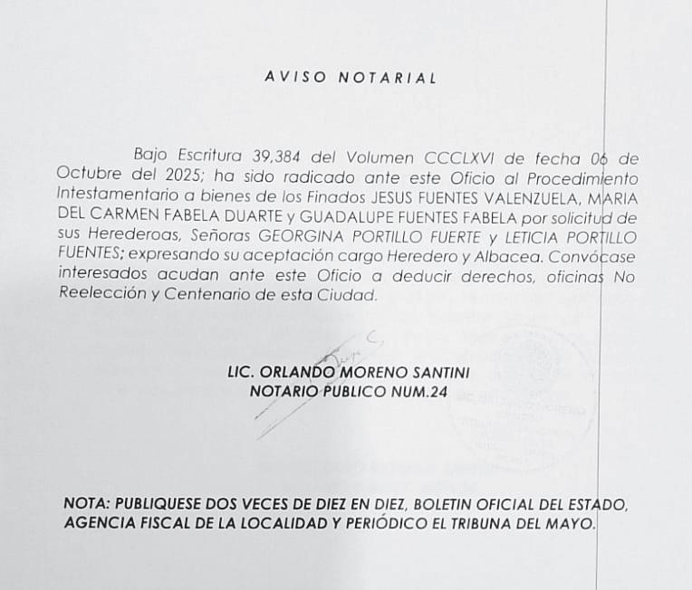 TRIBUNA SONORA, periodicidad Diario, Editor Responsable Hilario Olea Fontes, Reserva de Derechos al Uso Exclusivo del Título 04-2025-052014313200-101, Certificados de Licitud de Título y Contenido 17817. Con domicilio de la publicación en Gral. José María Yáñez 2, San Benito, Hermosillo, C.P. 83190, Sonora, México. Impreso y distribuido por Líneas Sonora Hoy CW, Blvd. Rodolfo Elías Calles #278 Ote. Col. Campestre, entre Durango y Juan Álvarez, C.P. 85160, Cajeme, Sonora.