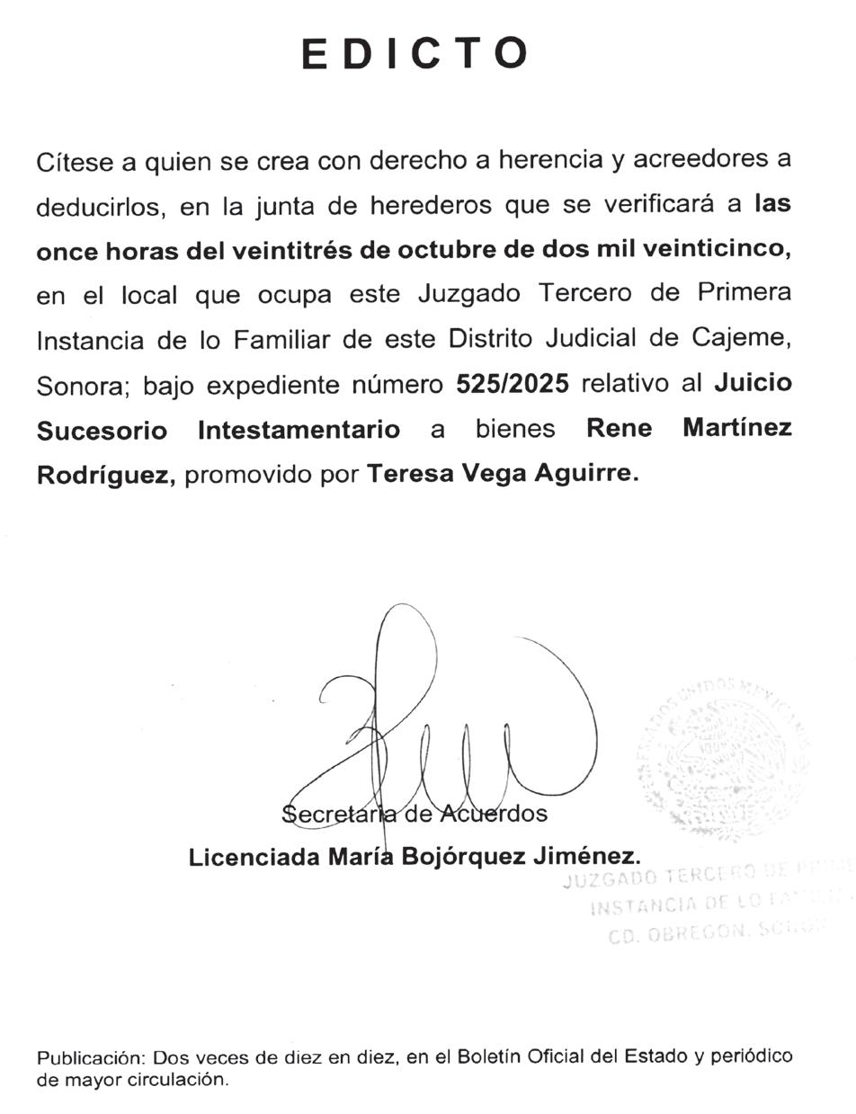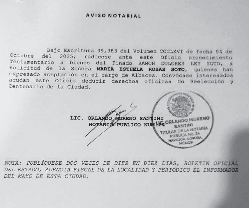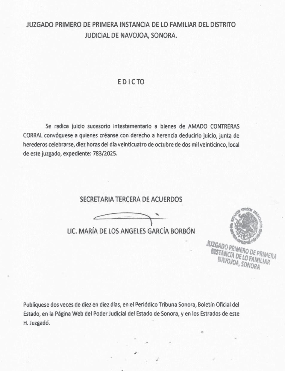 TRIBUNA SONORA, periodicidad Diario, Editor Responsable Hilario Olea Fontes, Reserva de Derechos al Uso Exclusivo del Título 04-2025-052014313200-101, Certificados de Licitud de Título y Contenido 17817. Con domicilio de la publicación en Gral. José María Yáñez 2, San Benito, Hermosillo, C.P. 83190, Sonora, México. Impreso y distribuido por Líneas Sonora Hoy CW, Blvd. Rodolfo Elías Calles #278 Ote. Col. Campestre, entre Durango y Juan Álvarez, C.P. 85160, Cajeme, Sonora.