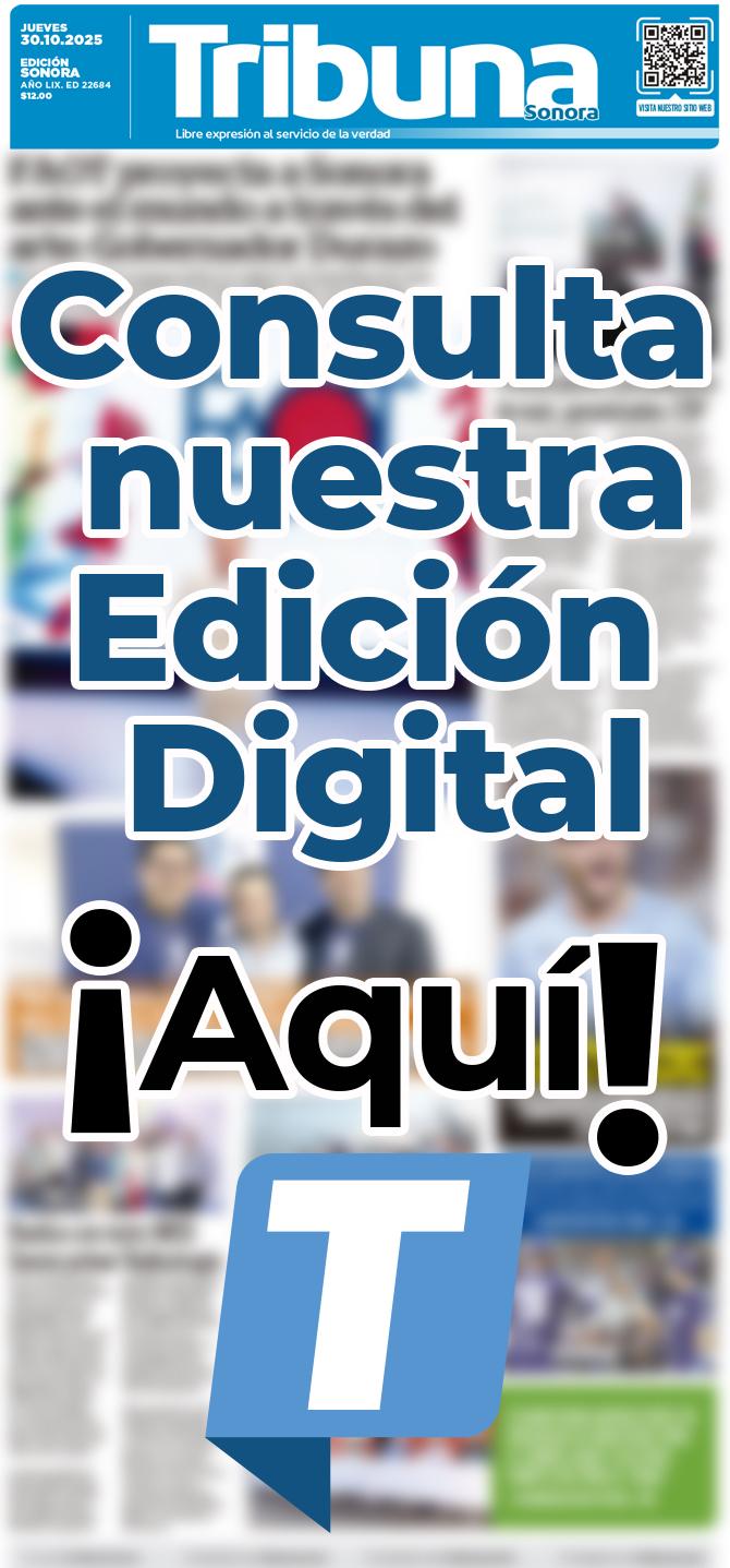 TRIBUNA SONORA, periodicidad Diario, Editor Responsable Hilario Olea Fontes, Reserva de Derechos al Uso Exclusivo del Título 04-2025-052014313200-101, Certificados de Licitud de Título y Contenido 17817. Con domicilio de la publicación en Gral. José María Yáñez 2, San Benito, Hermosillo, C.P. 83190, Sonora, México. Impreso y distribuido por Líneas Sonora Hoy CW, Blvd. Rodolfo Elías Calles #278 Ote. Col. Campestre, entre Durango y Juan Álvarez, C.P. 85160, Cajeme, Sonora.
