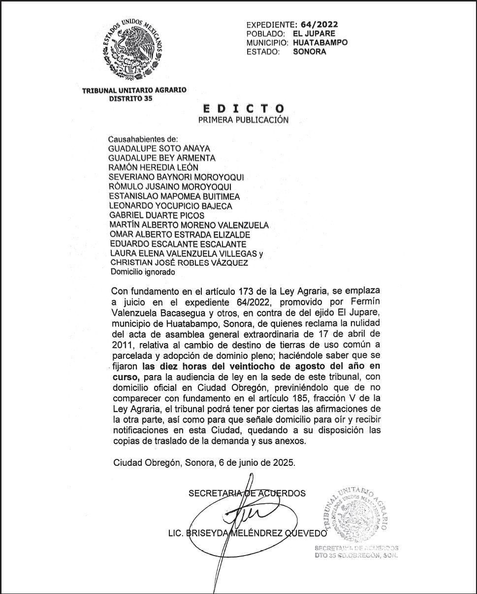 La FGJE señaló que, una vez detenido, fue trasladado e ingresado al Centro de Reinserción Social (Cereso) de Ciudad Obregón, quedando a disposición del juez de control, y posteriormente se formuló la imputación correspondiente.