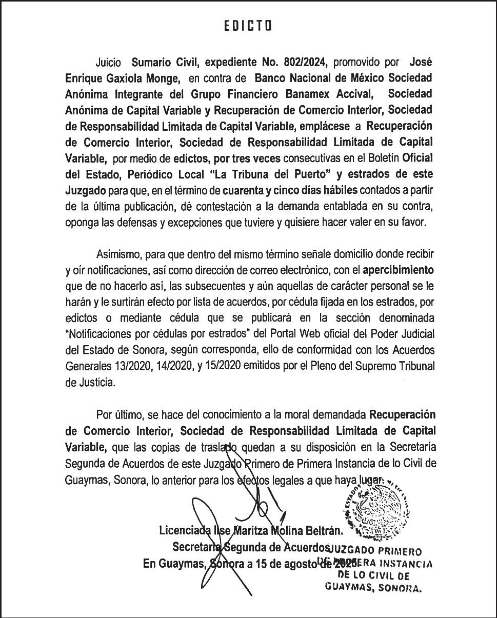 asumirá actividades de protección de datos. El diputado David Figueroa Ortega, quien sometió el dictamen a discusión del pleno, destacó que esta nueva disposición tiene el objetivo de que se garantice la información a los ciudadanos. Así mismo, en esta sesión extraordinaria los legisladores aprobaron la renuncia de tres magistrados del Supremo Tribunal de Justicia de Sonora: Javier Enríquez Enríquez, Guadalupe Von Ontiveros y América Yescas Figueroa.