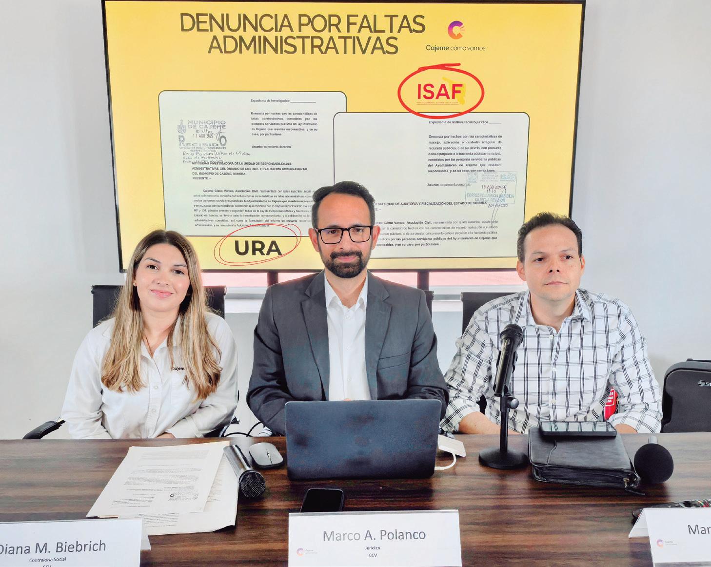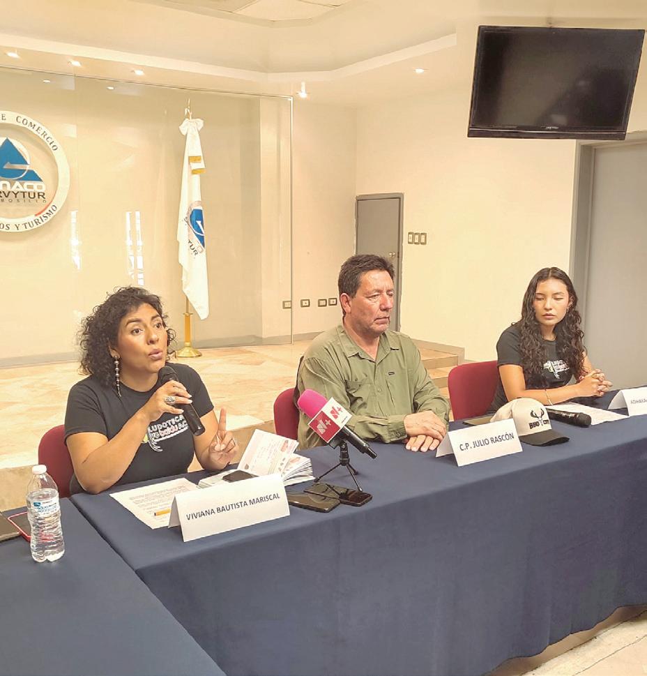Viviana Bautista, Julio Rascón y Adhara Pérez al presentar el proyecto