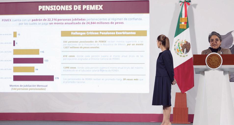 En el caso de Pemex, 15 personas ganan más de 340 mil pesos mensuales; ocho reciben entre 320 mil y 339 mil 999 pesos; a 115 se les paga entre 300 y 320 mil pesos, y 133 ingresan entre 280 mil y 300 mil pesos. En suma, 544 personas reciben un monto mayor al salario de la presidenta de la República.