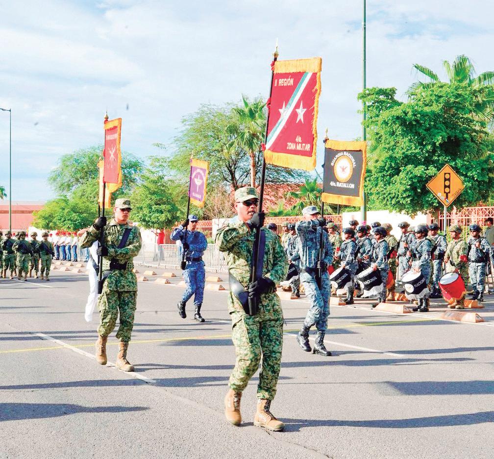 El gobernador, Alfonso Durazo, junto a dirigentes de instituciones militares de México en el desfile del día de ayer en Hermosillo