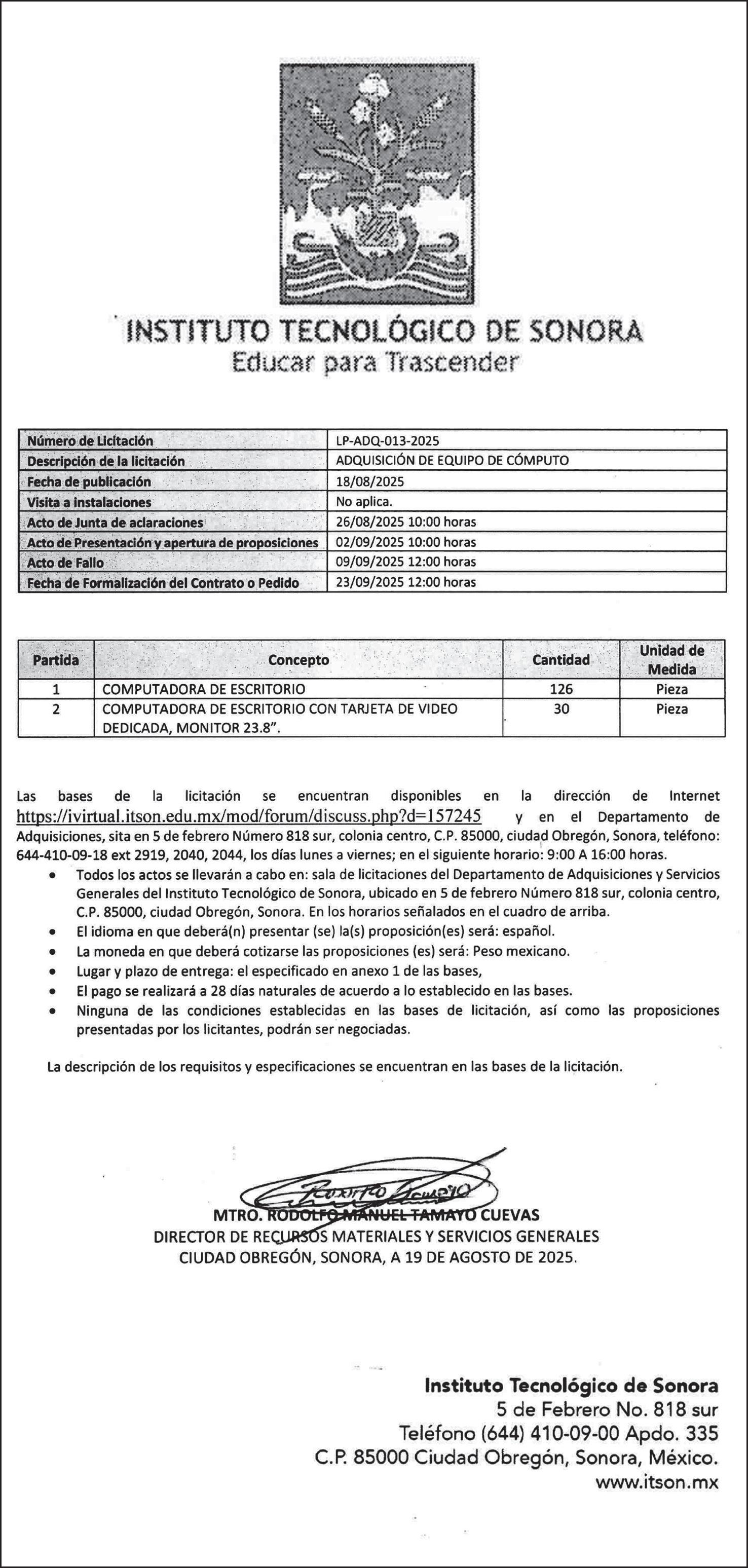 Editado, publicado y distribuido por LÍNEAS SONORA HOY CW S.A. DE C.V., domicilio