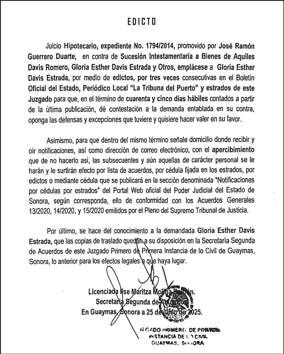 TRIBUNA DEL YAQUI, publicación de circulación diaria. Año LIX.