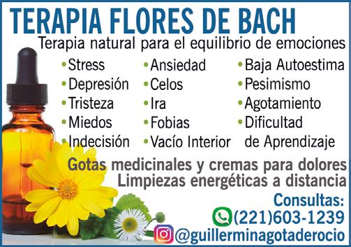 La terapia con Flores de Bach las descubrió un médico Edward Bach, es una terapia natural y vibra cional, compuesta por 38 esencias florales que ayudan a restablecer la salud, contribuyendo a armoni zar en los distintos campos físico, emocional, mental y espiritual de todos los seres vivos, sea humanos, animales y plantas.
