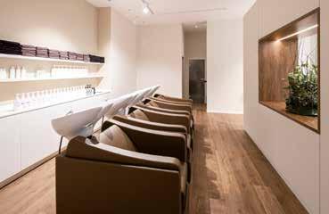 A chic and minimalist vibe for this salon in Germany focusing on two soothing colours. Brown can be found echoed in the leather chairs, the wood parquet flooring and furniture plus the choice of towels. White goes perfectly with the salon’s La Biosthétique products. A place designed for them. The green of plants discreetly energises this interior without disturbing its sense of tranquillity. The whole is modern and airy. The wall opening ensures communication and connection between the cut and wash areas. The uncluttered mirrors slide elegantly into the interior without obstructing the perspective. A salon conducive to relaxation.