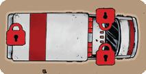 Move your Victim’s figure up to 4 spaces on the board. All movement is orthogonal (not diagonal), and you may NOT move through the solid lines around walls, hedges, trees, and cars. You may move freely through doors.