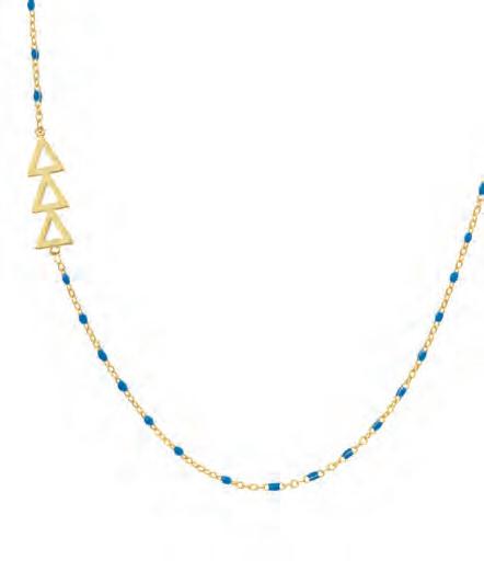 Elevate your look with this delicate gold necklace featuring blue enamel bead accents and signature Delta charms.