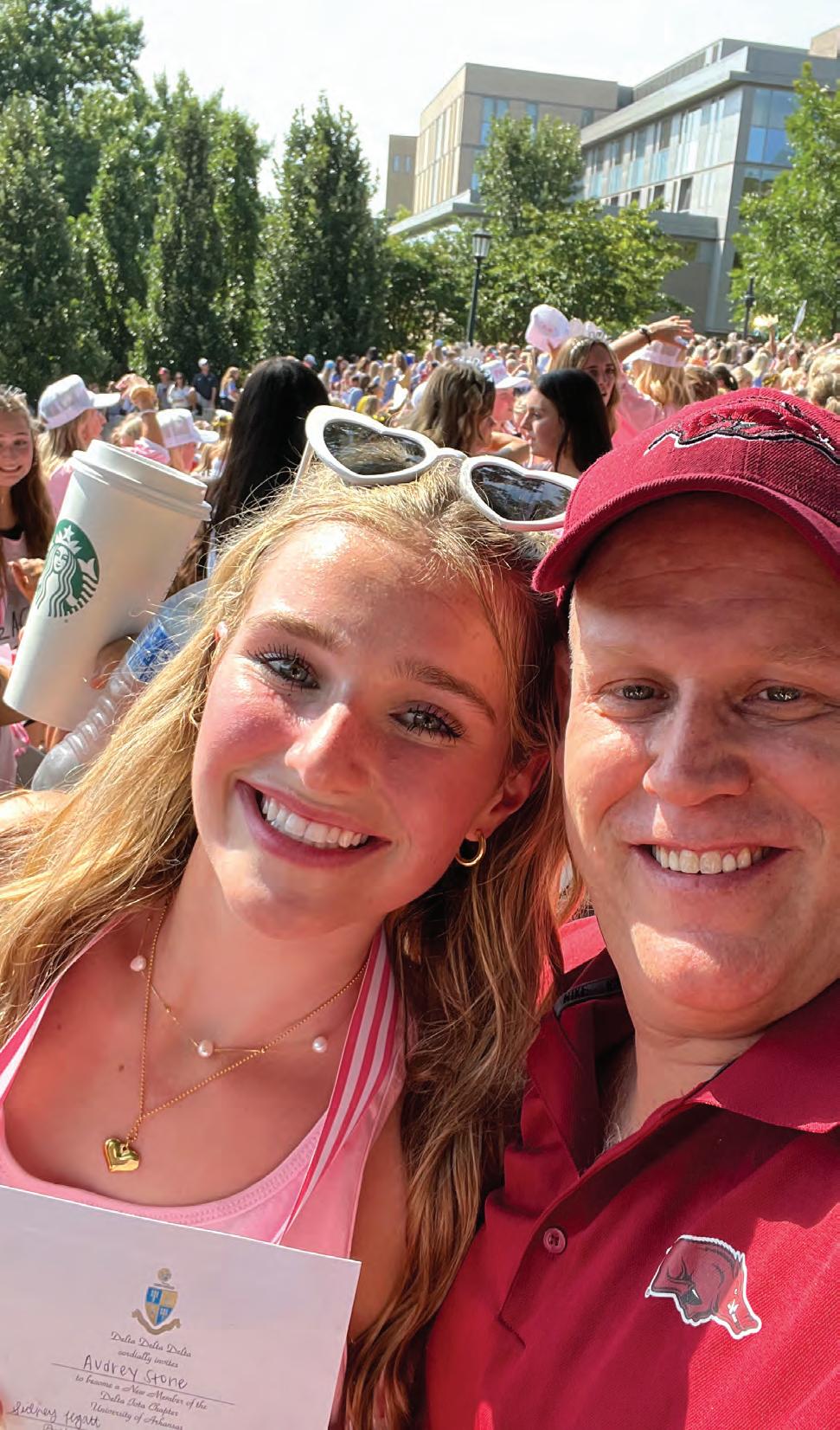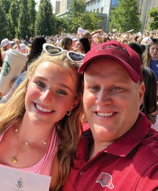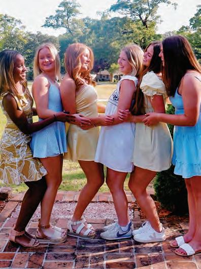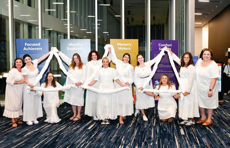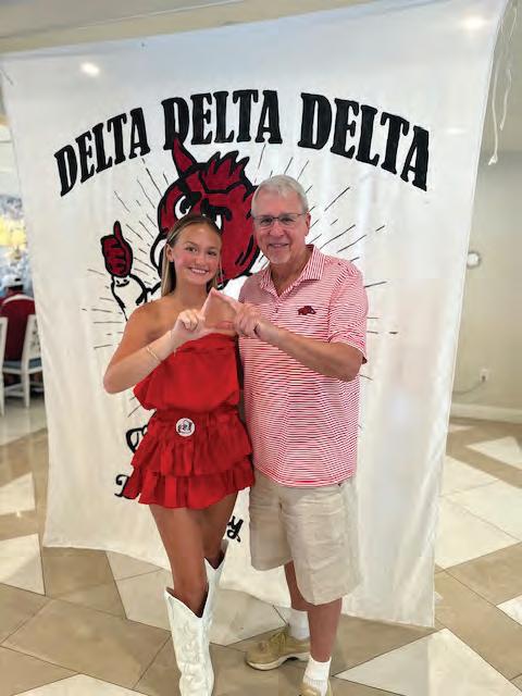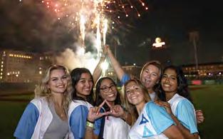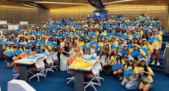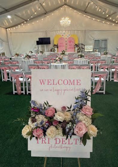 CHANTS OF “TRI DELTA!” ECHO FROM Olympia Way. Turning the corner, however, there is only a patch of dirt on which a giant white tent has been erected. But this is no ordinary tent. It features a not-quite-life-size mural of the future Gamma Alpha chapter house, and it’s the site where the chapter held recruitment in the summer of 2025 while their new home has been under construction! Our Gamma Alpha Chapter at Texas A&M University embraced the unusual setting—turf floors, vinyl walls and all—and hosted a successful recruitment, welcoming 90 new members into Tri Delta’s sisterhood.