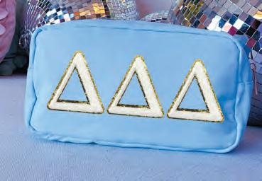 A must-have for every sister, this chic makeup bag with glittering chenille Deltas is perfect for everyday essentials.