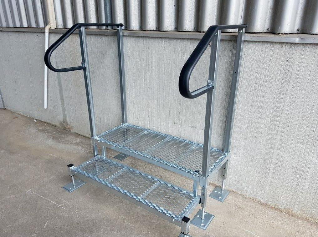Trapporna är varmförzinkade som standard (går att specialbeställa pulverlackerade i RAL-färger).