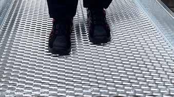 Sträckmetall ger överlägsen halksäkerhet i utomhusmiljö. Ytan ger bra grepp även när den är blöt eller isig, och is lossnar lätt när man trampar på den.