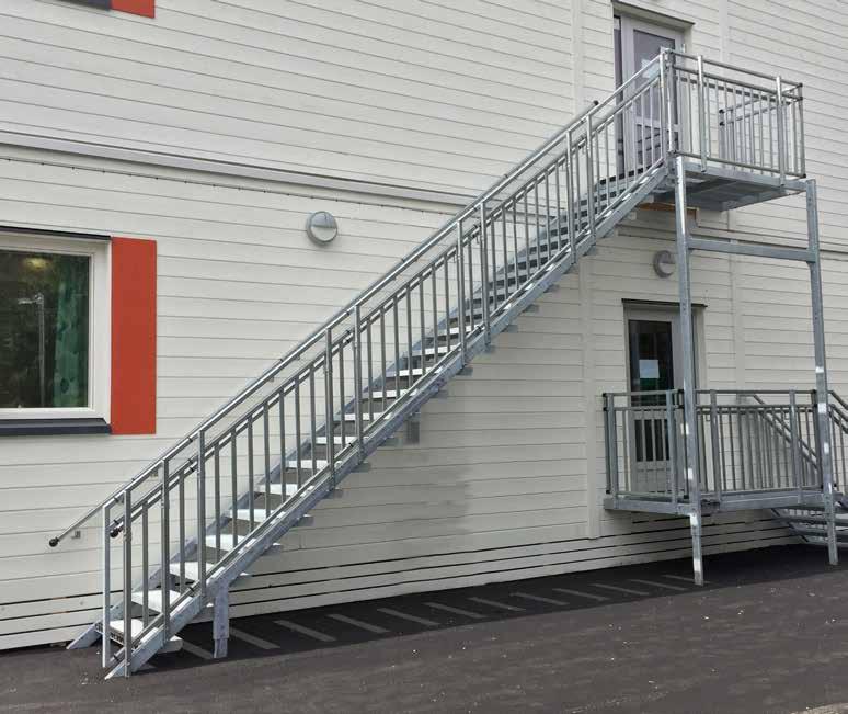 Tridents trappa kan användas både inomhus och utomhus. Trapporna är utformad enligt svenska byggnormer och uppfyller TIL2-kraven.