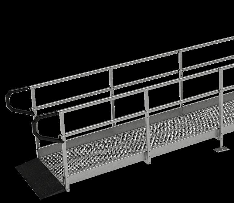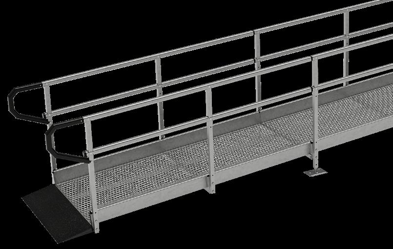 Den halksäkra gångbanan levereras med integrerade avåkningsskydd.