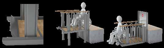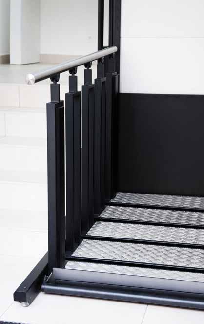 Vi har dessutom entréplan i storlekarna 1,5 x 1,5 och 2,0 x 1,5 m som med en unik konstruktion gör att planet kan grenslas över en befintlig trappa. Det innebär att trappan inte behöver rivas för att den nya rampen och planet ska kunna ansluta direkt till dörrtröskeln.