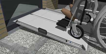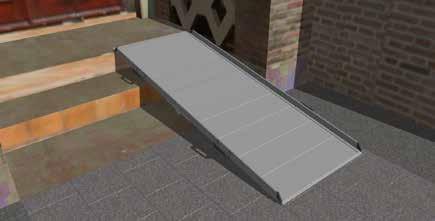 Vår minsta modell är den ledade rampen. Denna ramp fungerar som tröskelramp och kan brygga trösklar med maxhöjd 4 cm.