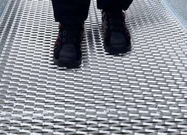Sträckmetall ger en tyst, säker, stabil och mycket halksäker yta att gå på. Materialet släpper också igenom nederbörd.