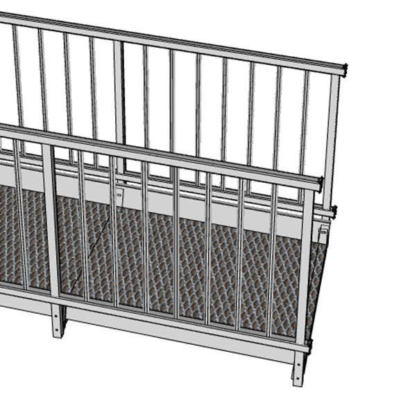 For home adaptations, there are two types of railings to choose from: a standard railing (Railing 2) and a child-safe railing (Railing 4). The standard height is 900 mm. The baluster modules have vertical openings that are 100 mm wide, meeting current safety requirements for children. For smaller height differences, the ramp can be built without a railing or with a railing on only one side, depending on needs and design.