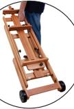 Prático e engenhoso cavalete para estúdio e campo, ideal também para aquarela ou guache. Dotado de rodas para transporte, é muito versátil, permitindo a colocação da tela em várias posições, inclusive na horizontal para pintar com aquarela ou guache. Comporta uma tela de até 1,60 m ou duas telas de 70 cm de altura.