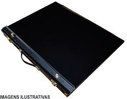 Com divisões internas, paleta de compensado 3 mm e alça para transporte. Os suportes corrediços do tampo, possibilitam ajustes de inclinação da tela de 0º à 90º graus. Comporta telas de até 64 cm.