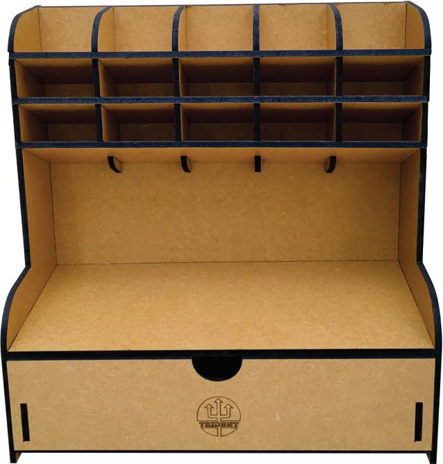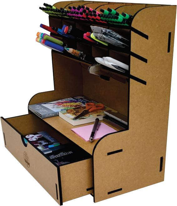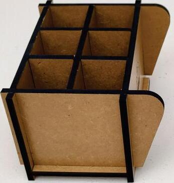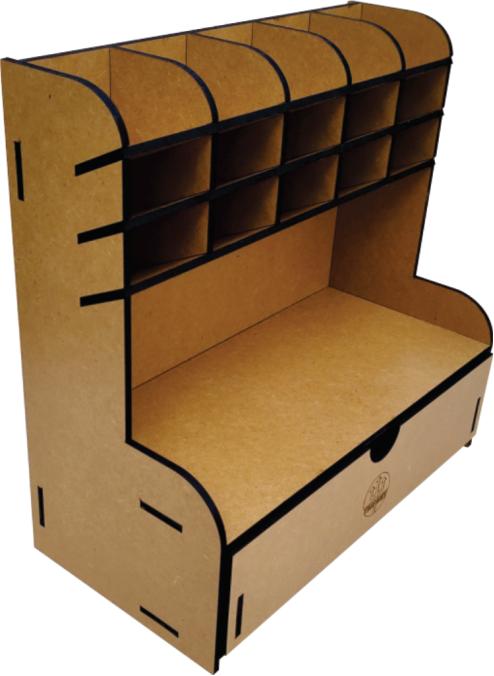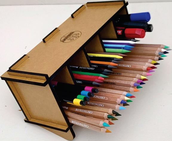 Mantenha seus acessórios para desenho, artes e pintura bem guardados, separados e classificados conforme as suas necessidades de uso e tendo-os sempre a mão para uma escolha fácil e rápida. Muito útil, para profissionais e estudantes organizarem os seus lápis pincéis, marcadores, réguas, tesouras e outros acessórios e que também se aplica a outras funcionalidades, em casa ou no trabalho, pois trata-se de um prático porta objeto de uso geral, para suas ferramentas, objetos de pequeno porte, acessórios pessoais, maquiagem, etc. Fabricado em MDF de 6 mm de espessura, com cortes retos, precisos e de fino acabamento.