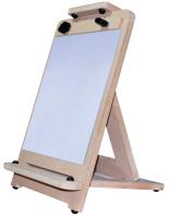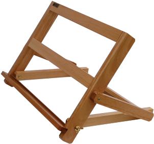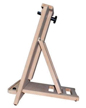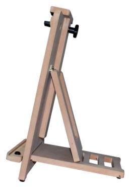 Prático cavalete de mesa, muito versátil, com regulagem de inclinação. Possui apoio antideslizante na base. Comporta telas de até 77 cm de altura.