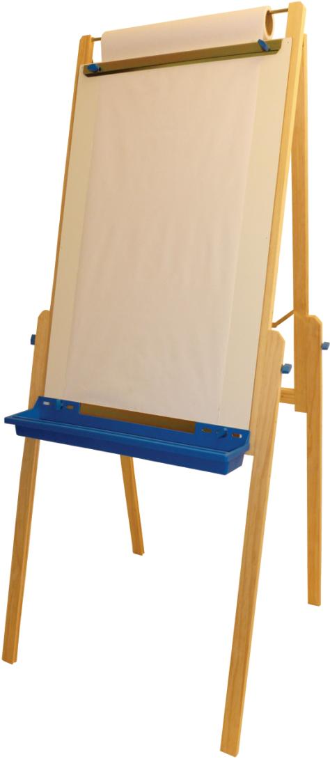 Fabricado em pinus natural, sem verniz. Com quadro de Duraplac branco para pincéis hidrográficos. Possui prendedores de ferro bicromatizado (para bloco de papel) e suporte em ferro bicromatizado (para rolo de papel). Fácil de desarmar, ocupa pouco espaço para transporte e armazenagem. Acompanha: 01 Rolo de papel sulfite (25,00 x 0,457 mts) e 1 Bandeja porta-objetos.