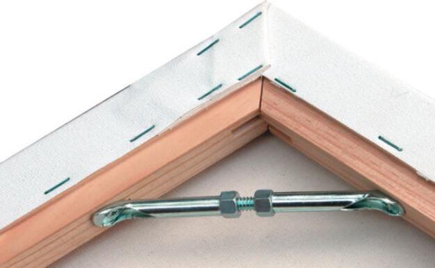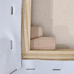 • Espessura: 2,0 cm x 5,0 cm, usinados na face de contato com o tecido e vincados no verso, proporcionando melhor acabamento do tecido à tela. Ajuste de tensão por 8 cunhas angulares plásticas que acompanham o produto;
