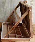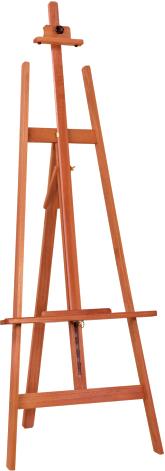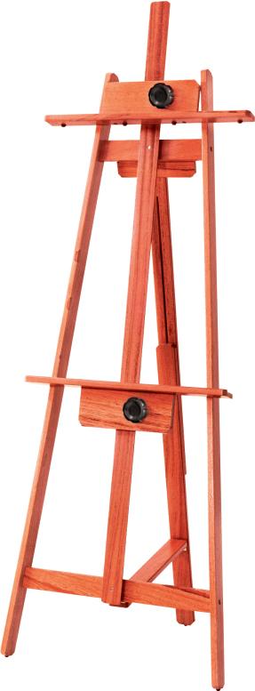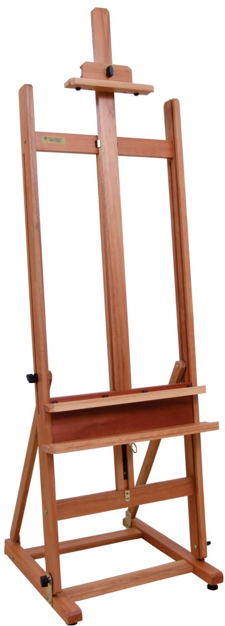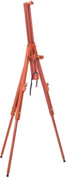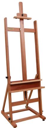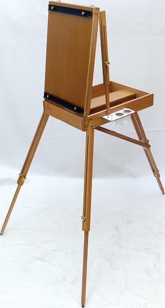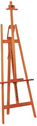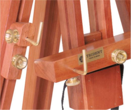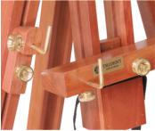 Este cavalete de construção simples e sólida, tem em seu conjunto de suporte da tela (haste central), um sistema articulado que permite vários graus de inclinação. Suporta telas de até 1,20 m de altura.