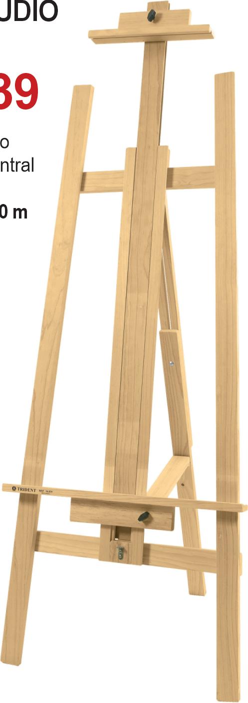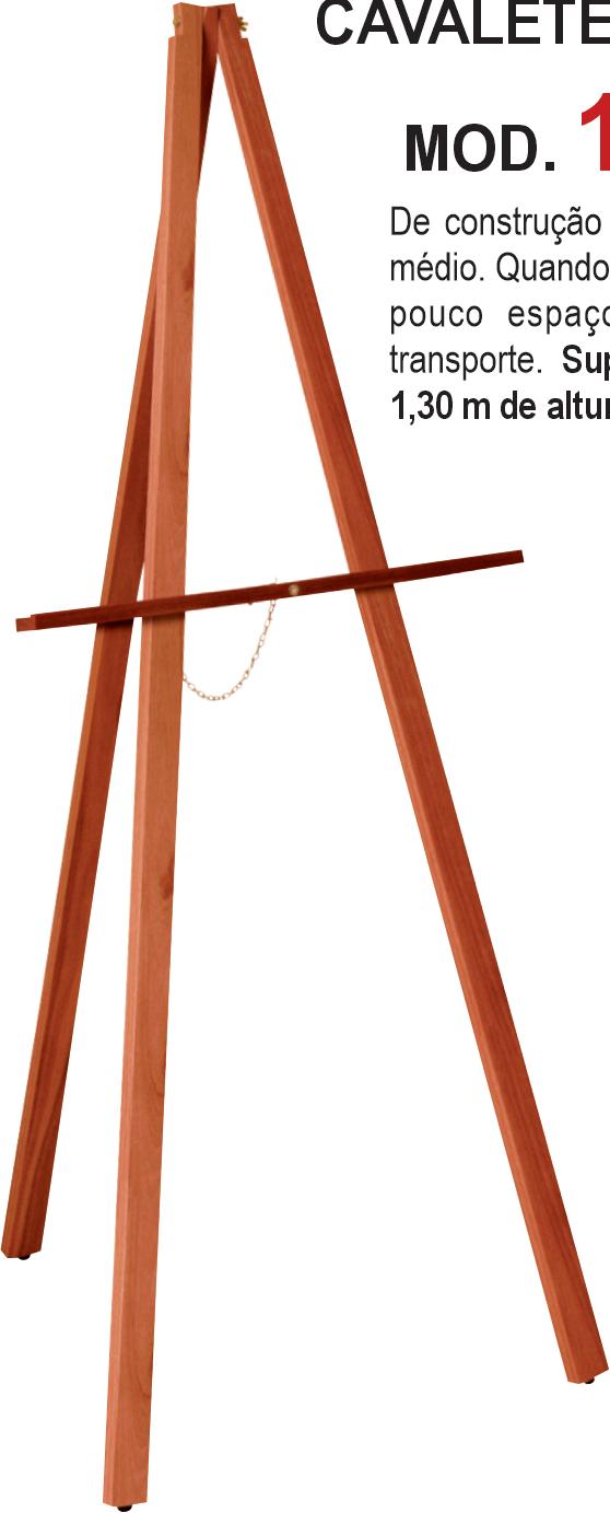 Prático e tradicional cavalete de porte médio. Suporta telas de até 1,35 m de altura.