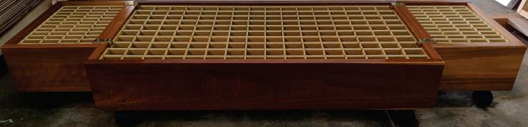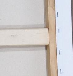 • Espessura de 3,5 cm x 5,0 cm, alinhados por sistema “Finger” anti-empenamento, usinados em 4 fases na face de contato com o tecido e vincados no verso para que haja um acabamento mais perfeito do tecido. Ajuste de tensão por 8 cunhas angulares em madeira que acompanham o produto;