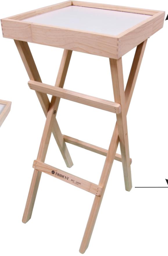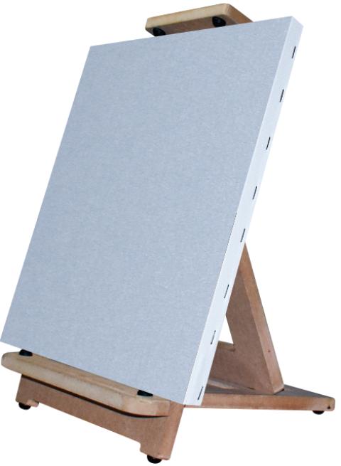 Fabricado em MDF de 15 mm de espessura, leve e resistente. Ideal para trabalhos com telas de até 60 cm ou folhas no formato A4. De fácil transporte e montagem, pode ser usado em 3 posições de inclinações. Muito resistente e durável, com ferragens latonadas e borboletas anatômicas com acabamento em plástico, para o prendedor de tela e do papel.