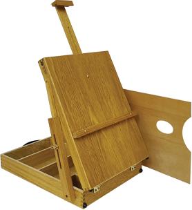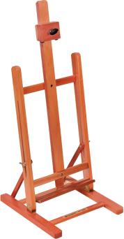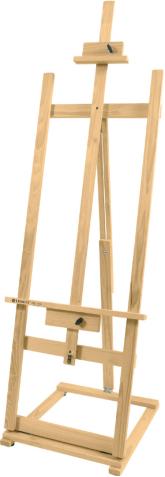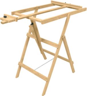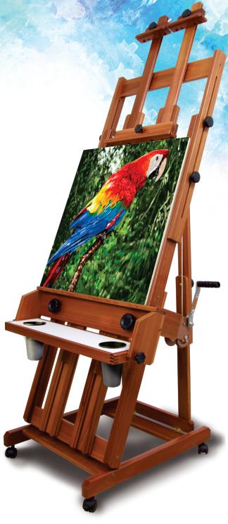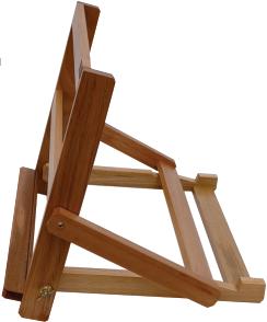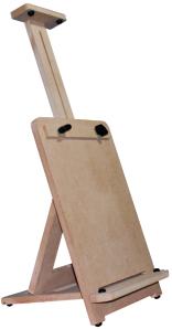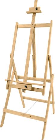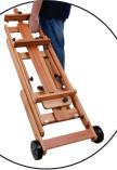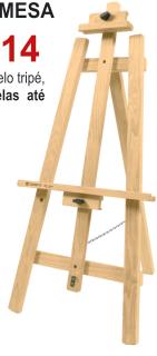 Prático cavalete com cremalheira. Suporta telas de até 1,20 m de altura.
