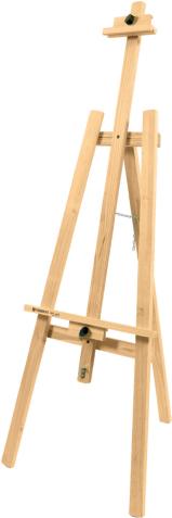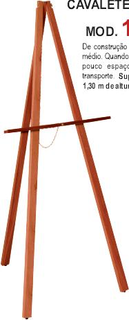 Cavalete muito difundido no mercado Europeu. Ocupa pouco espaço quando desmontado. Suporta telas de até 1,10 m de altura.