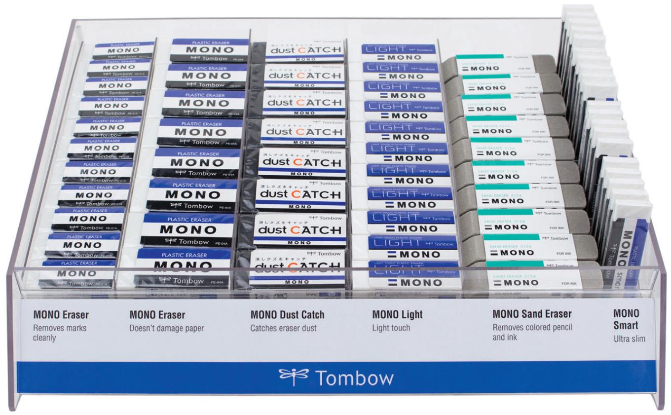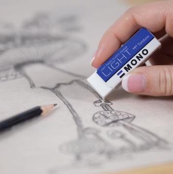 Estojo com 12 Lápis MONO HB, sendo um de cada 6B, 5B, 4B, 3B, 2B, B, HB, F, H, 2H, 3H, 4H, 1 borracha macia MONO LIGHT e 1 apontador profissional em metal.