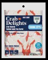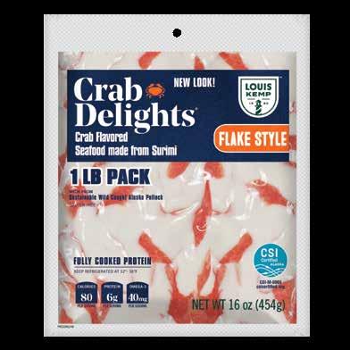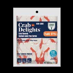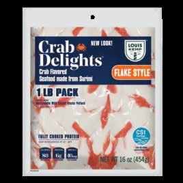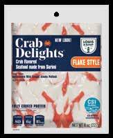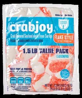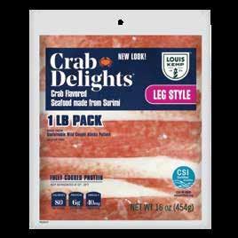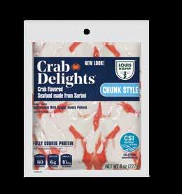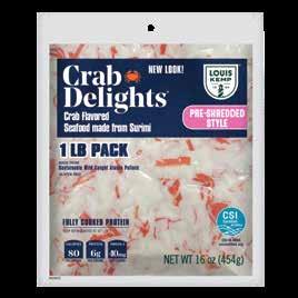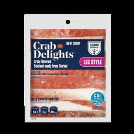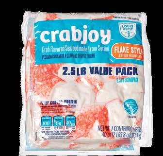 With Louis Kemp Crabjoy Snack Bites, you now have a surimi seafood option ready for on-the-go in a convenient smaller serving package. The larger pack sizes create value and are ready to be used in a classic favorite like mac & cheese or as a featured protein in soups and salads.