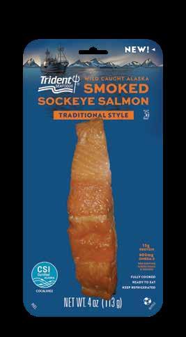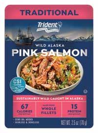 Today's consumers are looking for more healthy options, and Trident offers them a convenient new option with Trident Brand Pouched Salmon. We pack prime wild Alaska pink salmon caught by our own fleet of fishermen in a ‘use anywhere’ shelf-stable pouch in three popular flavors – Traditional, Smoked, Natural, and Honey BBQ. Enjoy this fully cooked salmon directly from the pouch, use it as a salad topping, or combine it with other ingredients for wraps, sandwiches, dips and fillings.