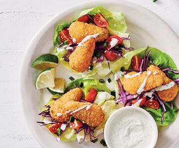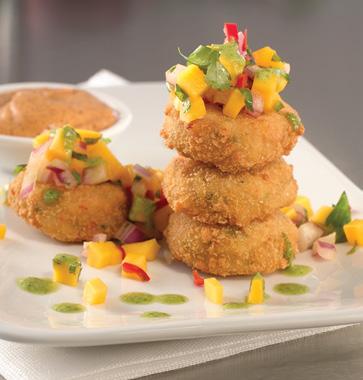 Create a unique menu they’ll crave! Start with classics like fish + chips and branch out to on-trend items like mini surimi seafood crab cakes served with sweet potato fries or potato wedges.