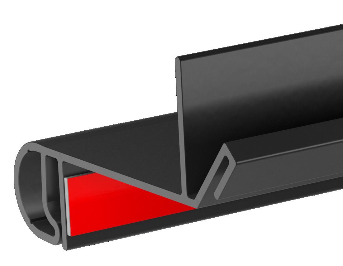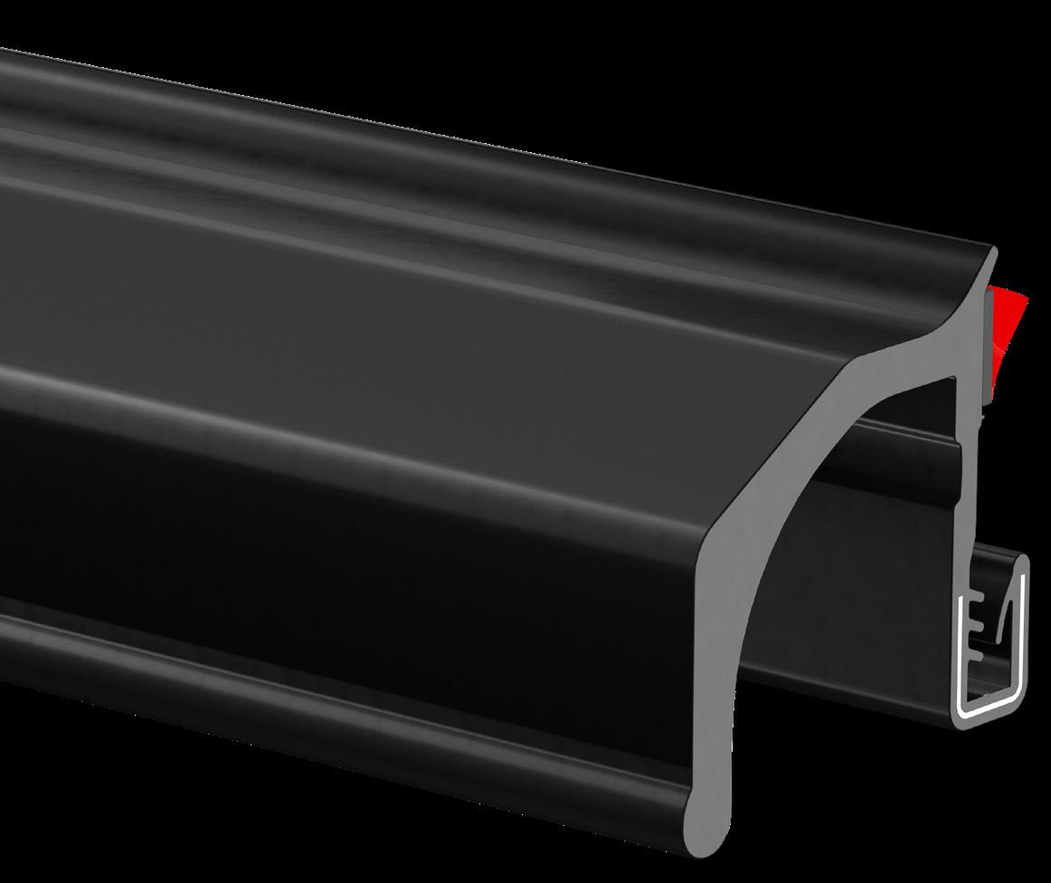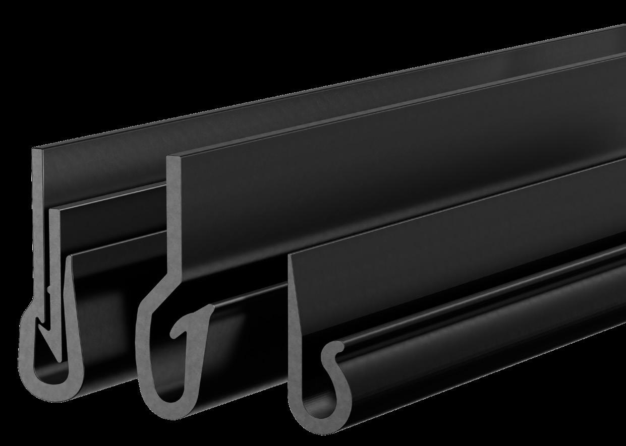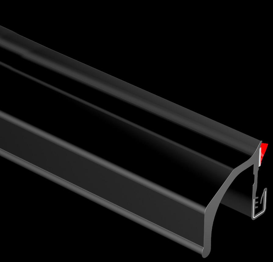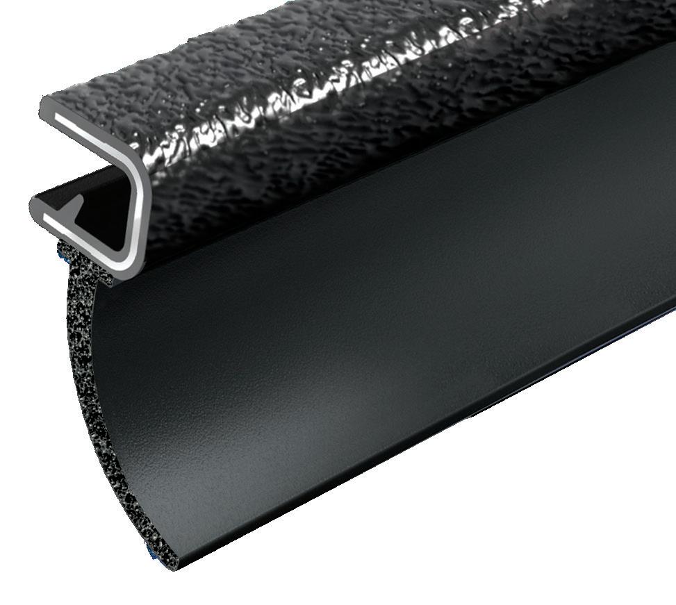 è un innovativo profilo per bordi in PVC flessibile con una configurazione ridisegnata della linguetta di fissaggio e del fermo posteriore per garantire prestazioni superiori e facilità di installazione.