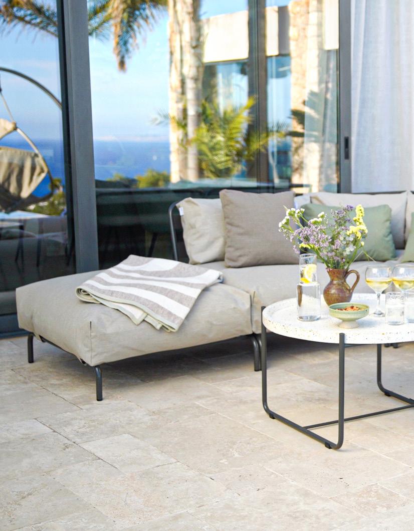Arm-Strong Chair Outdoor • Terrazzo Table big • Outdoor Cushions & Connect mattresses